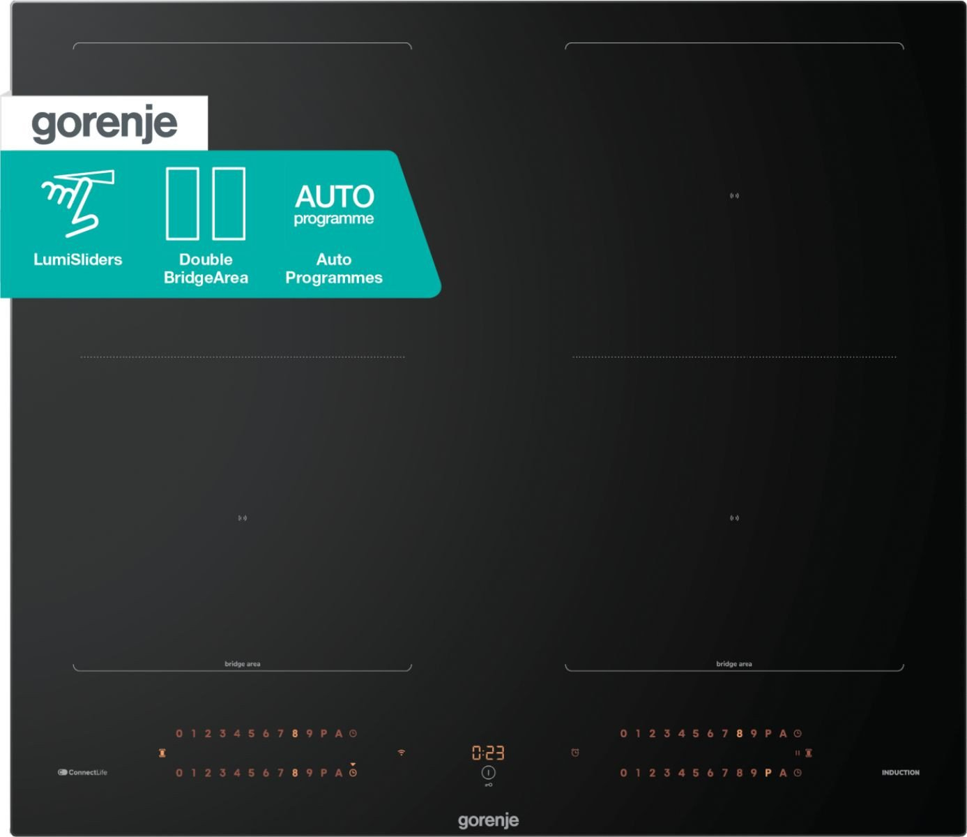 Plită cu inducție Gorenje GI6443BSCWF, 59,5 cm, Touch, 4 zone, sticlă ceramică neagră.